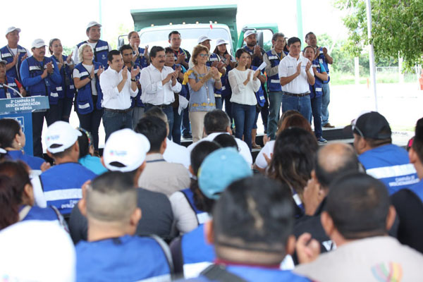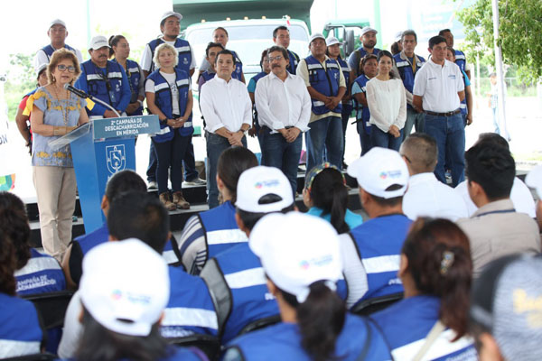 Mérida, Yucatán, 7 de septiembre de 2019.- Con un llamado a la sociedad a ser corresponsables en la prevención de enfermedades como el Dengue, Zika y Chikungunya, la Secretaria General de Gobierno, María Fritz Sierra, dio el banderazo de inicio de la segunda Campaña de Descacharrizacion 2019, la cual tiene como meta la recolección de 300 toneladas de cacharros para lo que contará con la participación de 1,600 brigadistas.