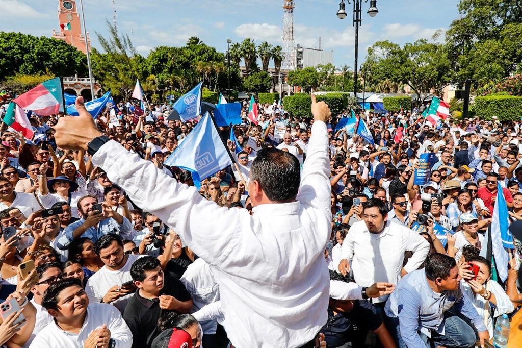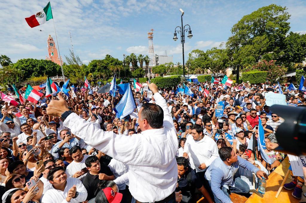 Ante miles de personas reunidas en la Plaza Grande, el abanderado del PAN anunció su recorrido para escuchar a todo Yucatán para traer más justicia, seguridad y prosperidad.
