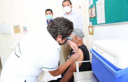 El titular de la Secretaría de Salud del estado, Mauricio Sauri Vivas, supervisó el inicio de la aplicación de la dosis a las personas de 60 años y más de esta población del oriente de Yucatán.