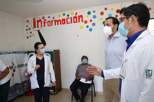 Por instrucción del Gobernador Mauricio Vila Dosal, Sauri Vivas acudió a la Unidad Médica Rural del Instituto Mexicano del Seguro Social (IMSS) de esta demarcación para supervisar el inicio de la aplicación de las vacunas de AstraZeneca que se destinaron a la población adulta mayor de este municipio.