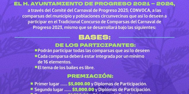 Home / MUNICIPIOS / Comité del “Carnaval de Progreso 2023” invita a inscribirse al tradicional Concursos de Comparsas