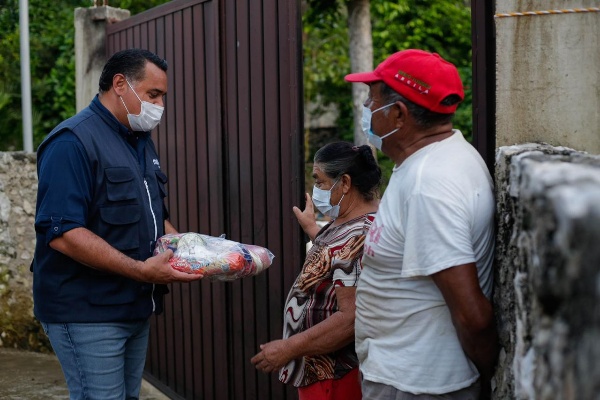 Renán Barrera entrega entrega paquetes alimentarios, raciones de comida, construcción de pozos profundos, desalojo de agua, fumigación y abatización, entre otras medidas