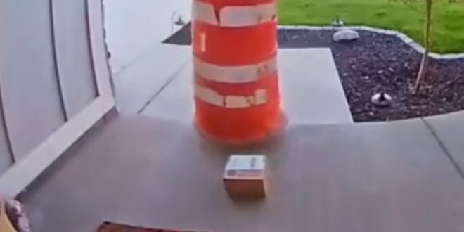 Un video se volvió viral al captar la manera en la que un presunto delincuente robó un paquete de Amazon con un cono vial para cubrir su identidad y así salir libre de acusaciones.