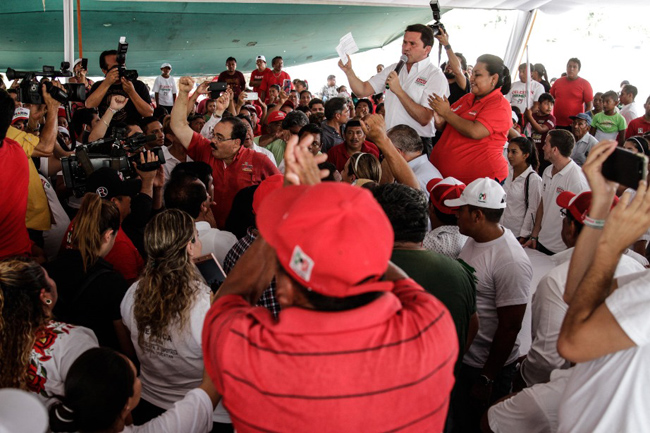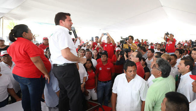 Celestún, Yucatán.- Ante más de dos mil celestunenses, el candidato del PRI a la gubernatura, Mauricio Sahuí Rivero, pidió el voto e hizo compromisos con el puerto para generar condiciones de desarrollo para sus habitantes.