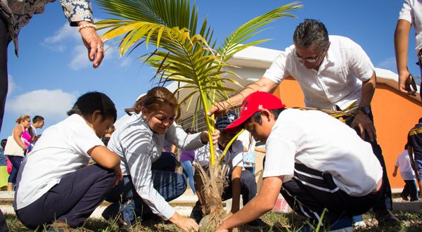 Mérida, Yucatán, 22 de febrero de 2019.- Como parte de un proyecto para fomentar la consciencia ecológica y autosustentable, “Sembrar un árbol es cuidar mi salud”, iniciativa de responsabilidad social que promueve el Centro de Atención Múltiple (CAM) de la colonia San José Tecoh, reunió a madres, padres, estudiantes y docentes para depositar plantas frutales y de ornato, así como hortalizas en las inmediaciones del plantel.