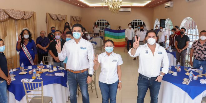 Progreso, Yucatán a 12 de abril de 2021. Integrantes de la comunidad LGBTTTIQ+ se reunieron esta mañana con los candidatos del Partido Acción Nacional, Julián Zacarías Curi, por la presidencia municipal, María del Carmen Ordaz Martínez, por la diputación del Distrito federal II y Erik Rihani González, por la diputación del distrito local IX, para presentarles por primera vez una agenda política que tiene como fin salvaguardar los derechos de dicha comunidad, y la cual abarca sensibilización, salud e incluso propone la creación de un consejo o institución dentro de la administración municipal para trabajar más en el tema.