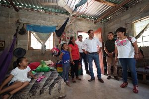 Otra de las beneficiarias de este programa que recibió la visita de Vila Dosal fue María Encarnación Puc Poot, quien desde hace 5 años vive en un hogar de tan sólo una pieza con paredes de concreto, pero techo de láminas con su esposo, Silvino, y sus hijos, Silvia y Adolfo, familia de 4 que dentro de poco contará con un cuarto más para vivir más cómodos.