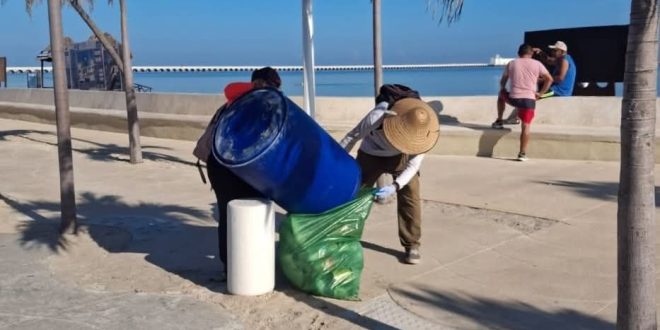 Progreso, Yucatán, a 08 de septiembre de 2025.-Por encomienda del alcalde Erik Rihani González, cada mañana mujeres y hombres de las brigadas de limpieza de playas de la Dirección de Catastro y ZOFEMAT realizan labores de cuidado ambiental, retirando desechos como botellas, bolsas de plástico, colillas de cigarro, entre otros residuos.