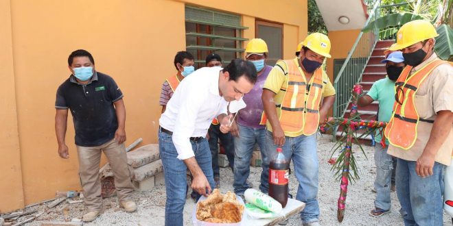 En el grupo de trabajadores de la construcción que laboran en esta obra, se encontraba Gilberto Pat Chi, originario de la comisaría vallisoletana de Tahmuy, quien destacó el gesto de Vila Dosal de compartir con ellos este manjar, luego de colocar la tradicional cruz en la parte más alta de la construcción.