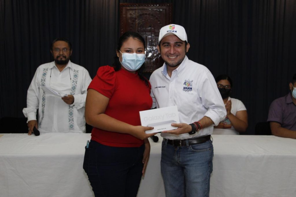Los beneficiarios de las tabletas electrónicas son 5 estudiantes que ingresaron a las preparatorias de la Universidad Autónoma de Yucatán (Uady) y 7 a licenciaturas de la misma casa de estudios, así como al Instituto Tecnológico de Mérida (ITM), Normal Superior y Tecnológico del Poniente que lograron el promedio más alto entre los 48 jóvenes que participaron en los “Cursos Propedéutico de Exani l y Exani ll” que impartió la Jefatura de Calidad Educativa y desarrollo Humano de Umán.