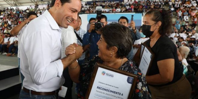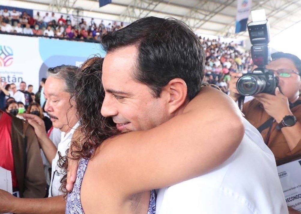 En el Polifuncional San José Tecoh, al sur de la ciudad, Vila Dosal, acompañado de la Gobernadora por un día, Adriana Marilú Gamboa Méndez, distribuyó certificados de educación básica y estímulos a adolescentes que, por diversos motivos, desertaron durante la pandemia y ahora han regresado a continuar su preparatoria.