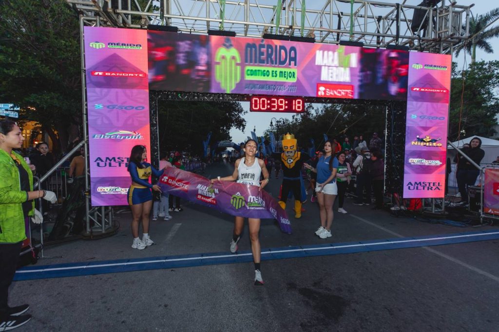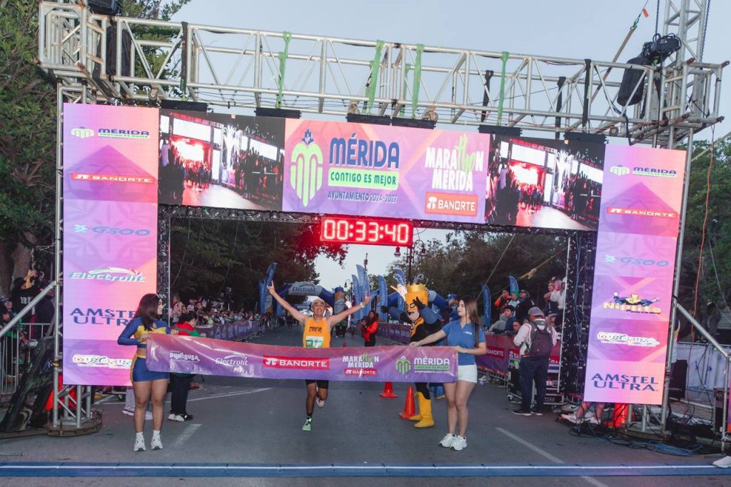 En cuanto a los yucatecos mejor posicionados, en los 42 kilómetros fueron Fernando Saavedra de León, con un tiempo de 2 34’48”, de la categoría Sub Máster Varonil, y de las mujeres, Rosalba Esther Mex Mex, con 3 07’21”.