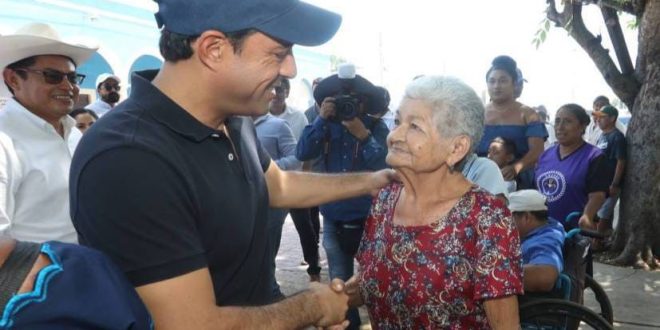 -En gira de trabajo por este municipio, Vila Dosal distribuyó útiles y desayunos escolares, así como apoyos de los programas Peso a Peso y acciones de vivienda.