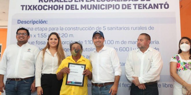 A su vez, el titular de la Secretaría de Desarrollo Social (Sedesol), Roger Torres Peniche, dijo que en esta zona se ejecutarán 20 acciones de vivienda, entre baños y cuartos, con cerca de 2 millones de pesos y para mejorar la salud de la población y reducir el fecalismo al aire libre, se construyeron 5 sanitarios rurales en Tixkochoh, con tanque séptico, biodigestor autolimpiable, tinaco, muebles, registros y alimentación hidráulica.