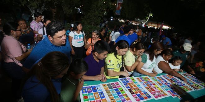 Kimbomba, balero, chácara, vólibol con globos de agua, pirinola, lotería, jala soga y futbolito, fueron algunos de los juegos que se instalaron en el parque y que decenas de familias disfrutaron desde las 18 hasta las 21 horas.