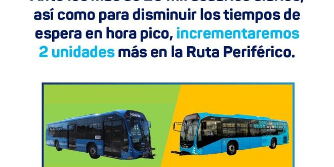 La ampliación de la Ruta Periférico se determinó debido a la gran demanda de más de 20,000 usuarios diarios, por lo que, con estos cambios, el tiempo de espera promedio para todo el sistema pasará de 24 minutos a tan sólo 12, por arriba de los valores promedio de otras ciudades mexicanas.