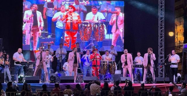 Al término de la ceremonia de Quema del Mal Humor, el ambiente de fiesta continuó con la presentación del grupo Merenglass que puso a bailar a las y los casi 10 mil asistentes con sus éxitos como “La mujer del pelotero” y “Culikitaka”.