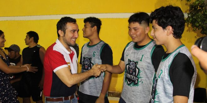 Umán, Yucatán a 13 de marzo de 2023.- Con una demostración de basquetbol entre los equipos Panteras y el equipo Rabbits el Presidente Municipal de Umán, Dr. Gaspar Ventura Cisneros Polanco realizó la entrega de los trabajos de recuperación de la cancha deportiva de la colonia San Francisco.