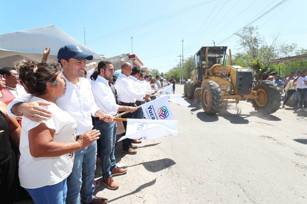 Vila Dosal y el alcalde anfitrión, Gaspar Ventura Cisneros Polanco, dieron el banderazo de inicio a la repavimentación de 4.5 kilómetros de vías, donde se erogarán recursos estatales por 15 millones de pesos, y se entregó la rehabilitación de otros 3.1 del tramo Umán-Tebec, mediante una inversión conjunta de 8 millones, en beneficio de 58,815 habitantes.