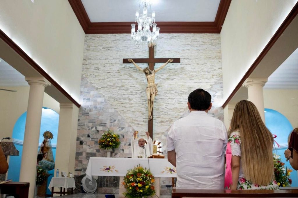Acompañado de su esposa, la profesora Wendy Méndez, y sus hijos Joaquín y Julián, Huacho escuchó la misa oficiada por el Obispo Auxiliar Mons. Pedro Mena Díaz en la iglesia del Celarain.