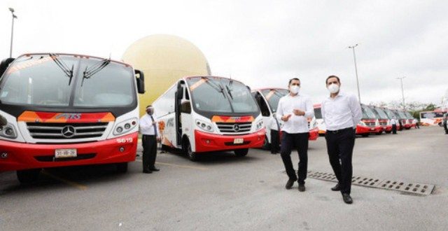 Mérida, Yucatán, 12 de enero de 2021.- La confianza de las empresas en Yucatán se refleja a través de más inversiones, como la que realiza la firma de transporte de pasajeros ADO Mobility que, mediante 167 millones de pesos, adquirió una flotilla de 58 nuevos autobuses, los cuales puso en funcionamiento el Gobernador Mauricio Vila Dosal para brindar un mejor servicio a cerca de 400,000 usuarios de comunidades y municipios del interior del estado.