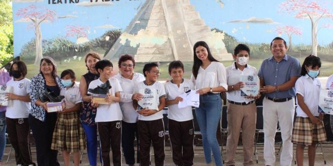 -En representación de Vila Dosal, la directora del Servicio Nacional de Empleo en Yucatán (SNEY), Itzel Falla Uribe, llevó estos respaldos a alumnos de la primaria “Cuitláhuac”.