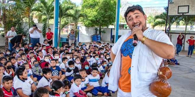 Mérida, Yucatán, a 16 de febrero de 2023.- Más de 600 alumnos de las escuelas primarias “Niño Artillero”, “Rubén Darío Herrera” y el preescolar “Salvador Alvarado” del municipio de Umán presenciaron y se divirtieron con las obras teatrales “Leyendo Leyendas” y “Lo que decía el monte”, en la cual aprendieron sobre los beneficios de los hábitos de lectura, la importancia de la equidad de género y la protección al medio ambiente.