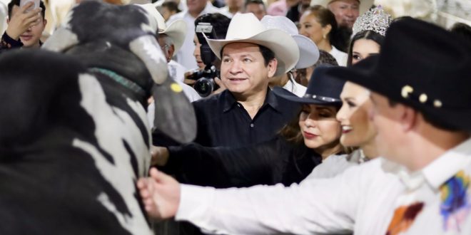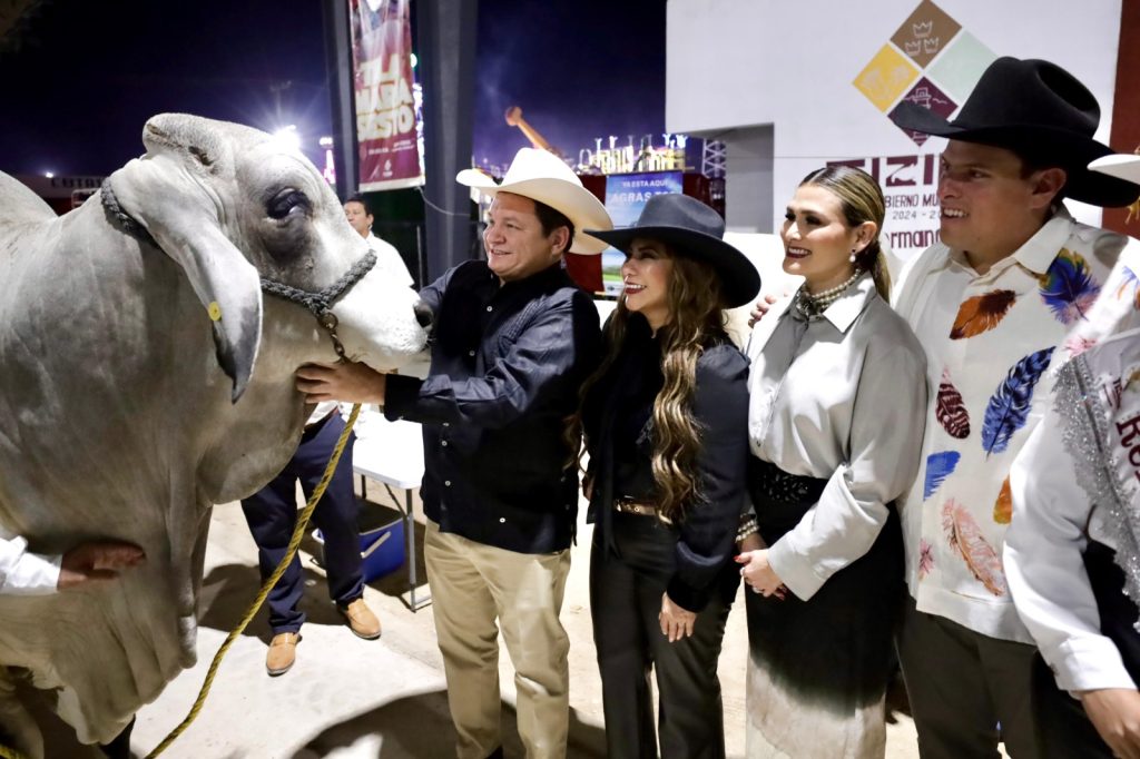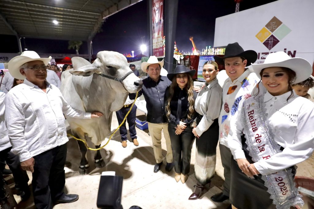 Posteriormente, el Gobernador realizó un recorrido por el recinto ferial, visitando la nave de exposición ganadera, donde se exhiben 400 argollas con 294 sementales y 106 hembras de registro de razas predominantes como la Brahman y Nelore, pertenecientes a 47 ganaderías del estado.