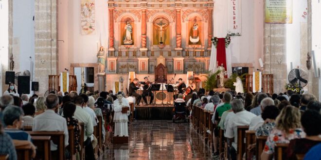 Más de 300 personas se dieron cita en las instalaciones de la Iglesia de San Servacio para disfrutar de un magistral concierto a cargo del Cuarteto Yucatán, el saxofonista David Sax, y la soprano Mariana Echeverría, quien interpretó una pieza musical del compositor yucateco Roberto Abraham Mafud.