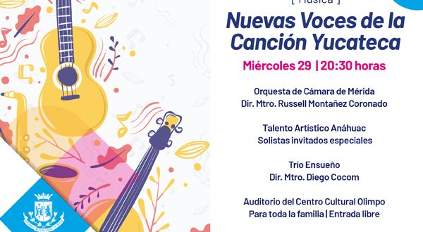 El Ayuntamiento de Mérida y la Dirección de Cultura invita al concierto “Nuevas Voces de la Canción Yucateca” que se ofreceré hoy a las 20:30 horas en el Auditorio del Centro Cultural Olimpo.