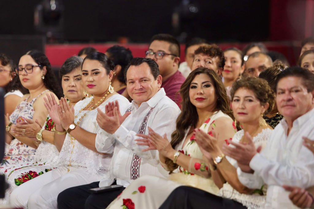 Junto a Kenia Walldina Sauri Maradiaga, alcaldesa de Umán, el gobernador disfrutó de esta fiesta en la que se hizo presente el talento de la yucateca Valeria Sosa, quien ha compartido su voz y pasión en programas de televisión y radio. Previo al espectáculo, las 25 jóvenes representantes de los municipios de Cansahcab, Chocholá, Conkal, Hocabá, Hoctún, Hunucmá, Ixil, Kanasín, Kantunil, Mérida, Motul, Progreso, Sanahcat, Seyé, Sinanché, Tahmek, Tekantó, Timucuy, Tixkokob, Tixpéual, Umán, Xocchel y Yaxkukul, realizaron su presentación.