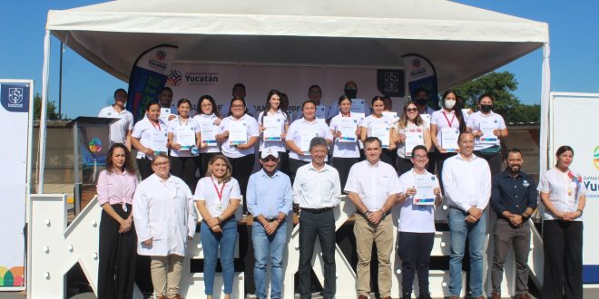 Durante el acto, entregó reconocimientos a los corporativos participantes, que además del mencionado, fueron Gutiérrez y Arredondo, Polietileno Publicitario (Polpusa) y Cementos Mexicanos (Cemex); en cada una, se capacitó a 22 embajadores de la salud, que también recibieron constancias por su labor por quienes recibieron Andrea Montero Xool y Karen Mendoza Pérez
