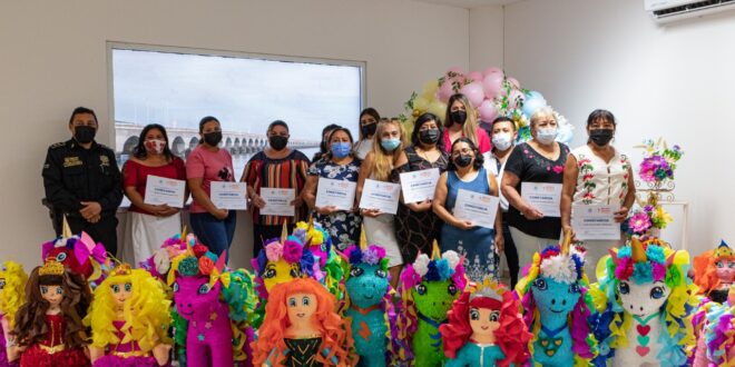 Progreso, Yucatán a 14 de mayo de 2022. El Instituto Municipal de la Mujer (IMM) de Progreso concluyó uno de los talleres que promueve entre las usuarias su autonomía económica, emprendiendo con la elaboración de piñatas.