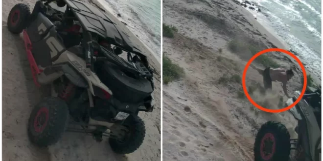 MÉRIDA, Yuc., 01 de julio 2025.- Un conductor que ingresó a gran velocidad a la zona de playa en Chuburná Puerto, presuntamente a bordo de un vehículo tipo Can-Am Razer, arrolló el sábado a un veraneante que le pidió que disminuyera la velocidad.