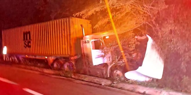 TIZIMÍN, Yuc., 05 de noviembre 2025.- Trágico accidente se registró anoche en el kilómetro 149 de la carretera Mérida- Tizimín, tramo Sucilá – Tizimín, cuando un pesado trailer que llevaba en su remolque un contenedor.