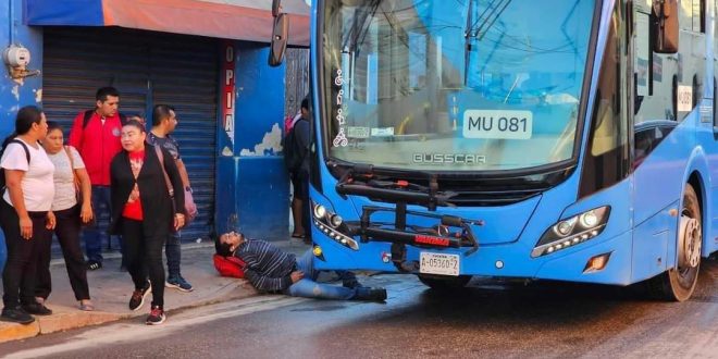 Mérida Yucatán a 04 noviembre 2024.- En un incidente que ha generado confusión entre testigos, un transeúnte fue golpeado este lunes por un autobús de la línea Va y Ven en el centro de Mérida, dejando como resultado al peatón lesionado.