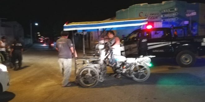 Home / Destacada policía / Conductor ‘se vuela’ el alto e impacta contra un mototaxi en Kinchil