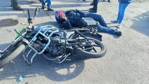 En su derrape, la motocicleta chocó contra otro motociclista que hacia su alto, derribandolo también al piso.