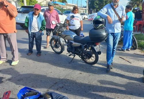 Merida, Yuc., 07 Febrero 2024.- Una conductora que transitaba sobre la calle 51 de la colonia El porvenir, al Poniente de la capital yucateca, envió al hospital a un motociclista al chocar cuando intentaba cruzar la calle 132.