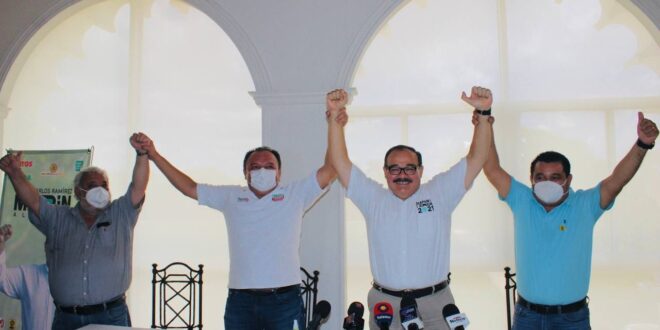 En rueda de prensa, acompañado del presidente del Comité Directivo Estatal del PRI, Francisco Torres Rivas, el dirigente estatal del PRD, Luis Manzanero Villanueva y el líder histórico del PRD, Eduardo Sobrino Sierra, Ramírez Marín hizo un llamado para que los ciudadanos emitan un voto informado, sin miedo, ni cohesión o engaños.