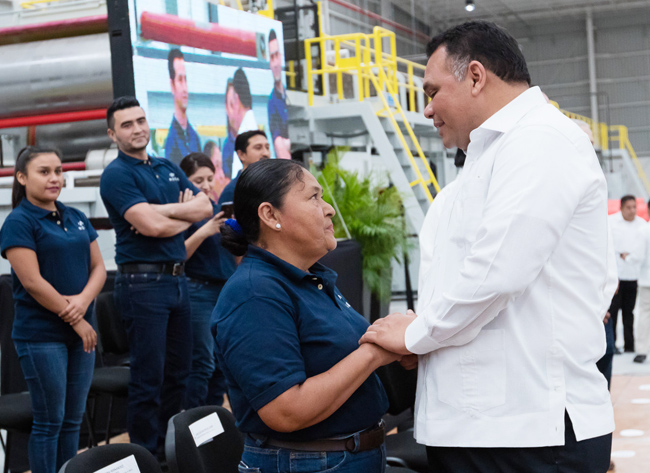 Al referirse a la nueva planta de la firma, el titular del Poder Ejecutivo recordó que cada empresa que invierte o se expande en Yucatán, significa empleo y mayor bienestar para las familias, y en el caso de Empaques Nova, es parte de la reindustrialización que inició hace cinco años.