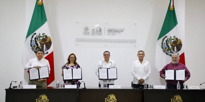 Durante la firma, se contó con la presencia de los diputados Gaspar Quintal Parra (PRI), Eduardo Sobrino Sierra (PRD) y Erik Rihani González (PAN).