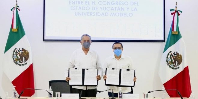 Mérida, Yucatán a 20 de junio de 2022. – El Congreso del Estado y la Universidad Modelo, llevaron a cabo la firma de un convenio de colaboración con el fin de aportar más a la profesionalización del servicio público, para que los trabajadores del Legislativo continúen su formación mediante programas de posgrado a un costo accesible.