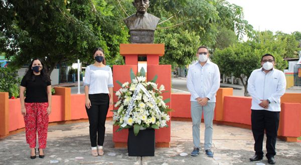 Frente al busto, del también periodista, situado en un parque de la colonia Pensiones, la Secretaría de la Cultura y las Artes (Sedeculta), organizó una ofrenda floral para rendir un homenaje al autor de Canek, considerada una de las obras mexicanas en prosa más importantes del siglo XX y que este año cumple 80 años de su publicación.