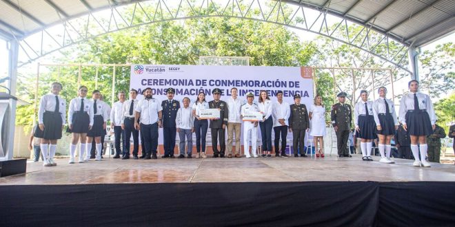 Teniendo como sede la escuela preparatoria número 8 “Carlos Castillo Peraza”, las autoridades de los tres niveles de gobierno y comunidad educativa fueron testigos de la interpretación del poema Credo, del escritor yucateco Ricardo López Méndez, que en voz de Yazmin Gaspar, expresó el profundo amor y creencia en nuestra Patria. El juramento a la Bandera estuvo a cargo de la niña Alison Cardeña Sánchez, alumna de tercer grado de la escuela Militarizada.