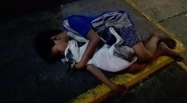 En redes sociales se viralizaron las devastadoras imágenes de un niño en situación de calle que duerme abrazado a su perro.