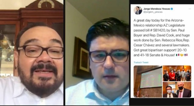 Durante su transmisión en Facebook, Ramírez Marín tuvo como invitado al Cónsul General de México en Arizona, Jorge Mendoza Yescas, quien agradeció la valiosa aportación del legislador yucateco para que esta acción se concretara.