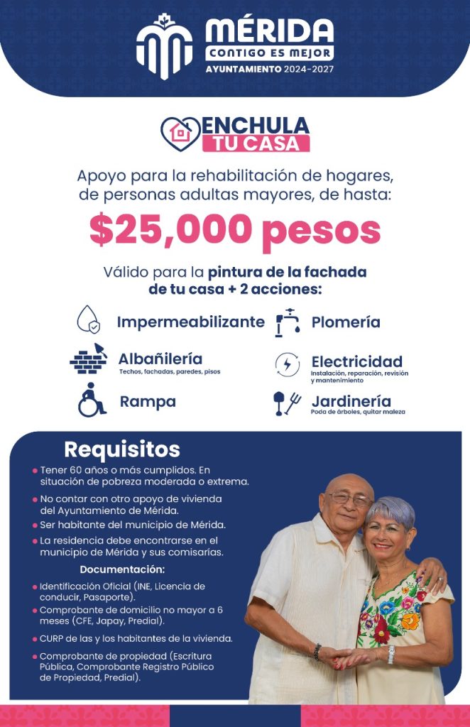 “Viendo la necesidad de personas mayores, quienes están imposibilitados para dar mantenimiento a su hogar, en el Ayuntamiento implementamos esta nueva política pública para contribuir a qué tengan un hogar digno”, externó la Alcaldesa en su reunión semanal con los medios de comunicación.