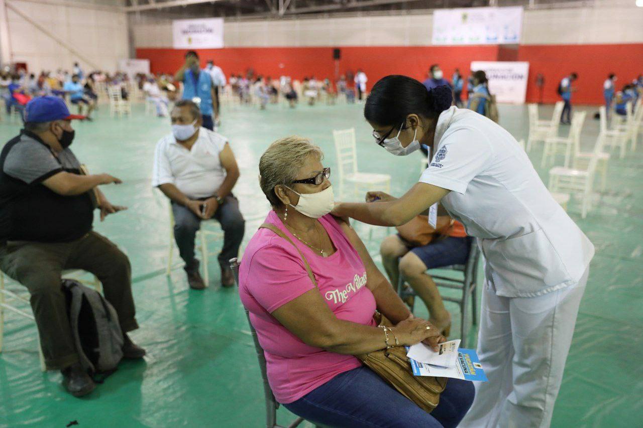Mérida, Yucatán, 7 de junio de 2021.- La vacunación en Mérida se reanudó con orden y normalidad este día con la aplicación de la segunda dosis de la vacuna contra el Coronavirus a los adultos mayores de 60 años y la primera dosis a personas de 50 a 59 años.