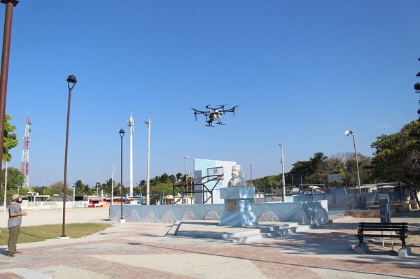 Progreso, Yucatán a 8 de abril de 2020.-El alcalde Julián Zacarías Curi continúa trabajando para implementar nuevas medidas de prevención y con ello proteger la salud de los ciudadanos, por lo que durante esta semana se intensificó las labores de desinfección a través del operativo con drones de aspersión.